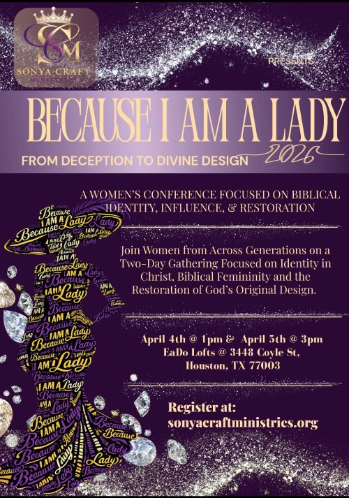 Because I Am A Lady is a declaration that biblical femininity is not outdated — it is powerful, intentional, and necessary. This conference is a call to women who are ready to exchange confusion for clarity, compromise for conviction, and performance for purpose.